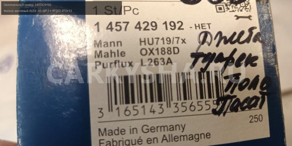 Фильтр масляный AUDI: A3 (8P ) 1.9TDi/2.0TDi 03