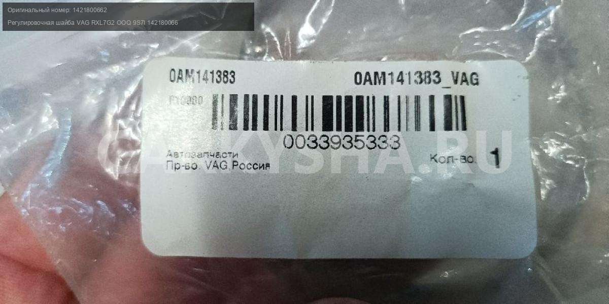 Примечание:Регулировочная шайба VAG RXL7G2 OOQ 9S7I 1421800662 0AM141383A